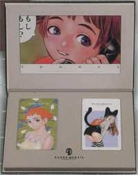 This is Range Murata's first professionally published collection of artwork. The collection includes one set of 40 loosely bound illustrations and an A4 size addendum book with various sketchwork. The set includes a matte board for framing of the illustrations and a decorative box.