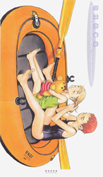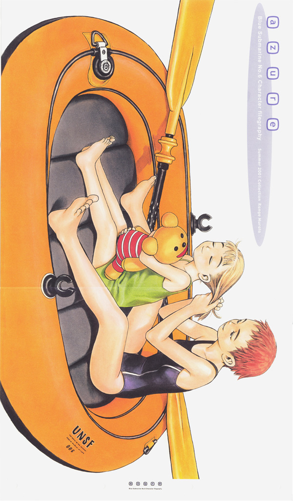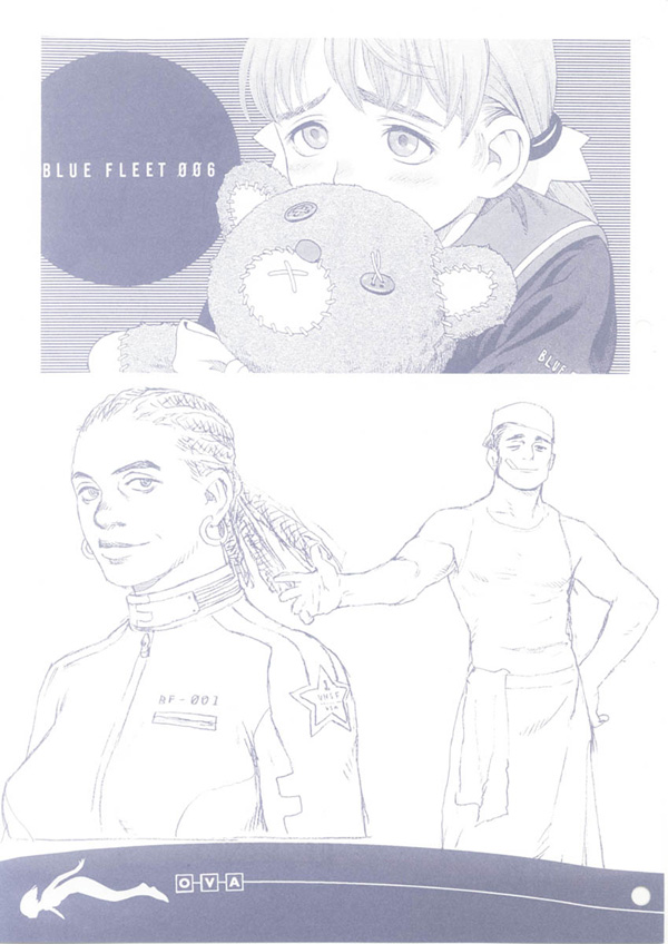 Details: Azure clocks in at an impressive 99 pages filled with rough character sketchwork devoted to the Blue Sub 6 OVA. This doujisnhi also contains an impressive 12 pages of full color and highly polished drawings. Most, if not all of the major and minor characters from the anime are presented and accounted for. In terms of presentation, the printing conveniently has a slightly blue hue.