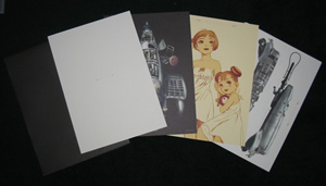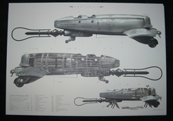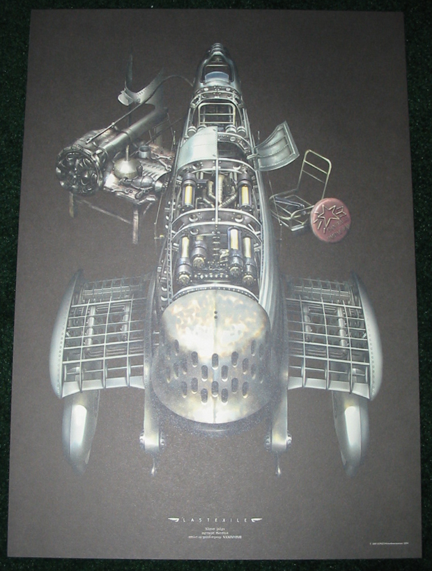 Details: The Last Exile Poster Book Collection includes three A3 sized [approx. 12 in. x 17 in.] poster images printed on high quality paper sheets. These three pieces of artwork were selected as the "best of" at GoFa's Last Exile Exhibition in Tokyo and they are presented in a large, black envelope with a [tiny] Last Exile logo. One of the posters is an illustration of Lavie and Al by Range Murata, and the other two images are highly detailed Vanship drawings. This set is sold exclusively through GoFa.