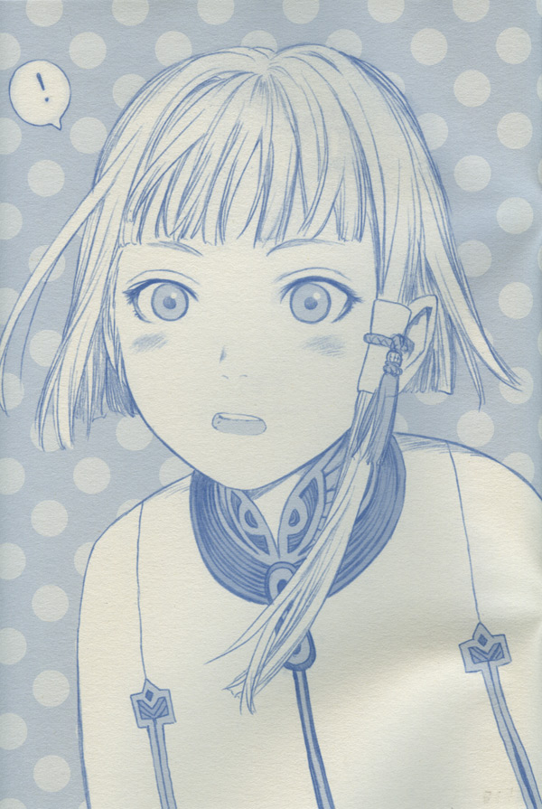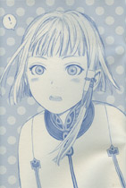 SPHERES Pre ++ [Pre PLUS PLUS] By: Range Murata Overview: SPHERES Pre ++ is the smallest of all the SPHERES releases thus far. Due to time restraints, Murata was not able to assemble a fully complete book and offered this as a sort of "preview" to the final [?] SPHERES release. Details: Most of the artwork contained in SPHERES++ consists of rough sketches of the original R2 Last Exile DVD covers. The remainder consists of more random character sketches, and two more polished illustrations of Al and Dio [pictured below.] The paper quality is nothing amazing, and the book is staple-bound. Also, SPHERES++ differs from the others in that the printing has a blue hue as opposed to the typical silver tone. Unless you are a completist or can obtain this release for a good price, it isn't much of a loss if you don't chase it down.