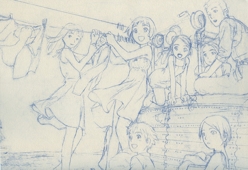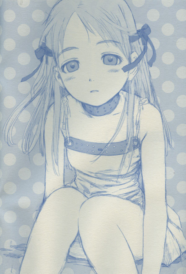 synchrotone By: Range Murata Overview: Murata strays from the SPHERES streak with synchrotone, a mild release featuring a scattering a sketchwork from numerous projects. Details: synchrotone retains a presentation similar to that of SPHERES releases, but this book finally includes some non-Last Exile sketchwork. Entirely black and white on off-white paper, a large portion of this release features full-page sketches with a number of smaller collages. robot, PSE Solid Collection, Blue Submarine No. 6 drawings, and random product doodles are scattered about. The cover is a pleasantly dark gray-teal color with a smooth finish. Overall, synchrotone is a pretty average doujinshi, but a welcome change from the previous SPHERES release streak.